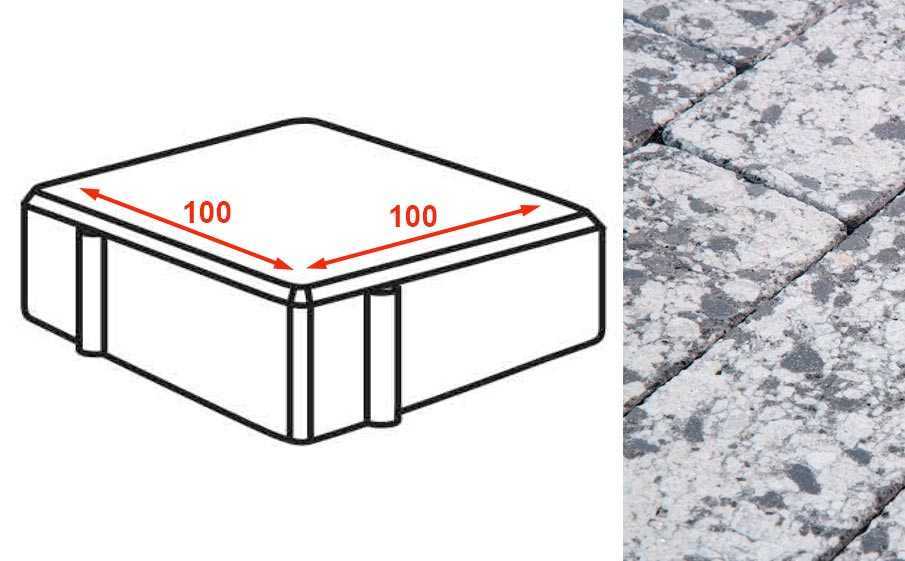 Плита тротуарная Готика Granite FINERRO, квадрат, Диорит 100x100x80 мм